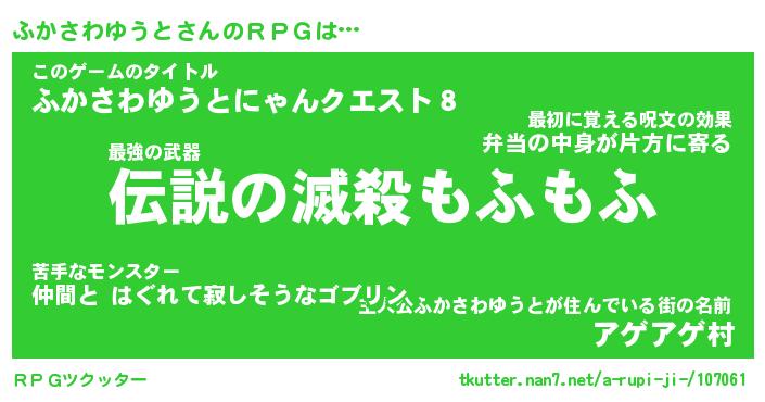 | 胡散臭い通販商品みたいなあだ名 | 『モテモテ間違いなし霊験あらたかなお札…その名も「ふかさわゆうと」』 |