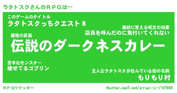 | 女子向けラノベタイトル風あだ名 | 『ラタトスク姫と円卓の騎士』 |