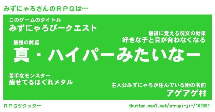 | 伝説のあだ名 | 『封印されし竜騎士みずにゃろ』 |