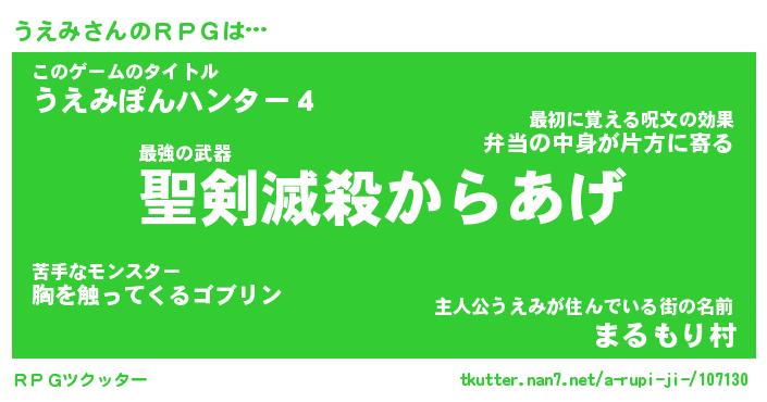 | 男性向けラノベタイトル風あだ名 | 『うえみの憂鬱』 |