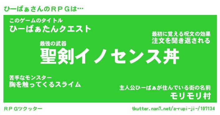 | 胡散臭い通販商品みたいなあだ名 | 『必ず成功する霊験あらたかなお札…その名も「ひーばぁ」』 |