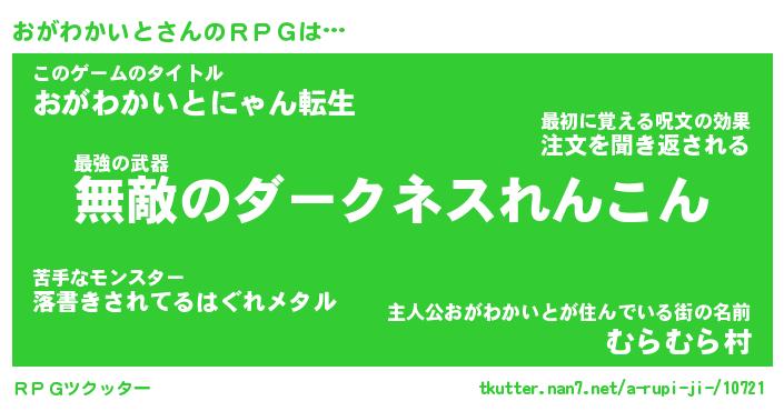 | 男性向けラノベタイトル風あだ名 | 『オガワカイトアートオンライン』 |