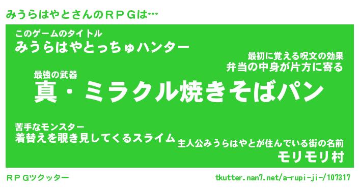 | 胡散臭い通販商品みたいなあだ名 | 『億万長者になれるブレスレット…その名も「みうらはやと」』 |