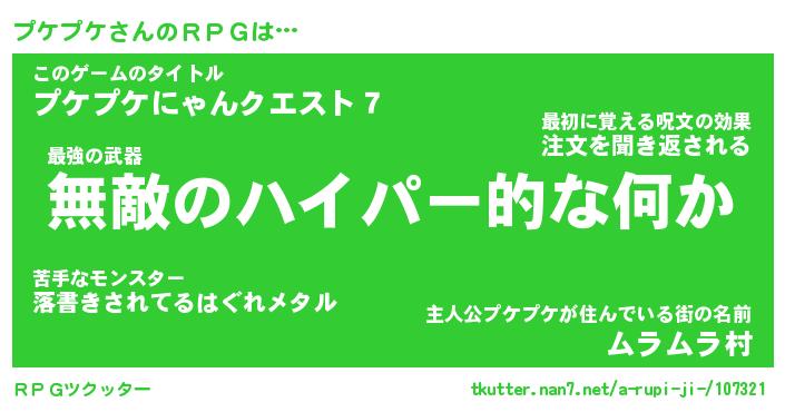 | ヒーロー風カッコイイあだ名 | 『スーパープケプケ』『魔戒騎士プケ』 |