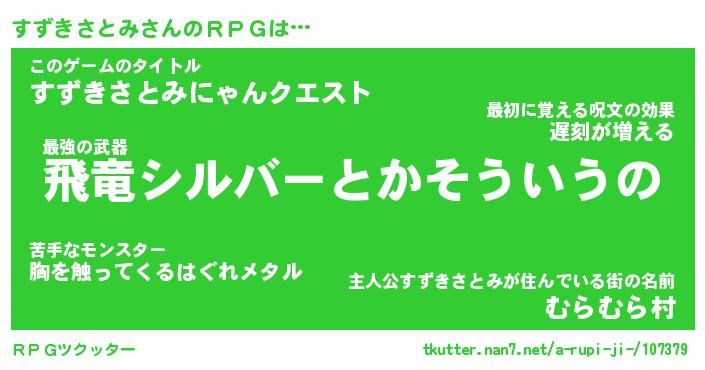 | ファンタジー風あだ名 | 『スズフェル』『ファントムスズス』 |