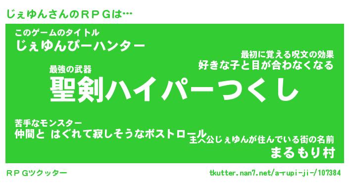 | 男性向けラノベタイトル風あだ名 | 『じぇゆんの憂鬱』 |