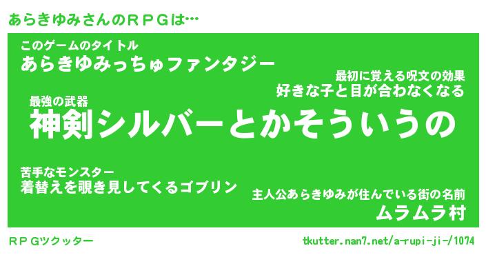 | ファンタジー風あだ名 | 『アラフェル』『エターナルアラキユミー』 |