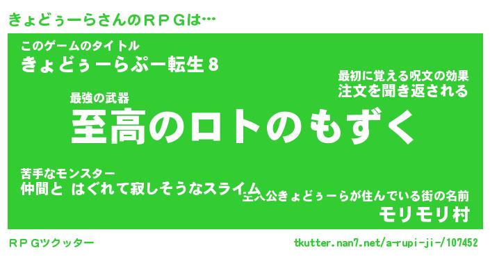 | ヘコむあだ名 | 『きょふぇ~』『レバニラ』『きょお』 |