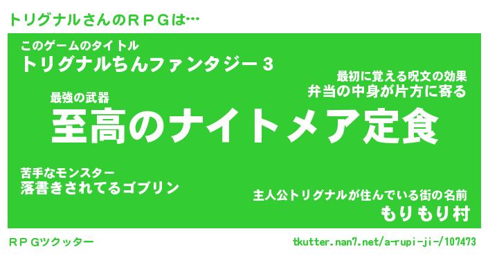 | ヒーロー風カッコイイあだ名 | 『スーパートリグナル』『暗黒騎士トリ』 |
