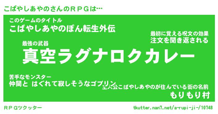 | 男性向けラノベタイトル風あだ名 | 『コバヤシアヤノアートオンライン』 |