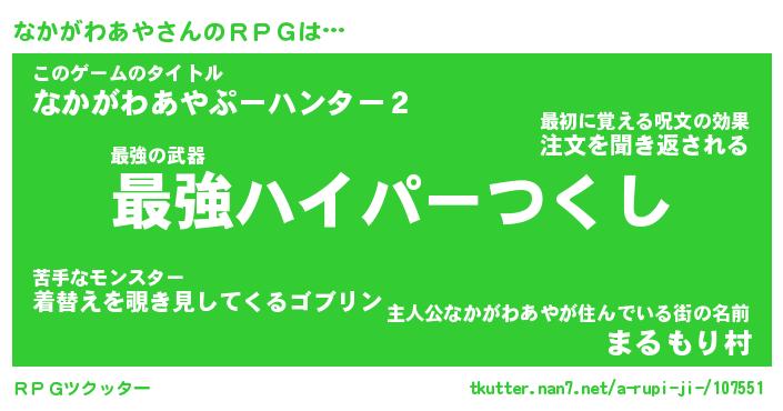 | 男性向けラノベタイトル風あだ名 | 『ナカガワアヤアートオンライン』 |