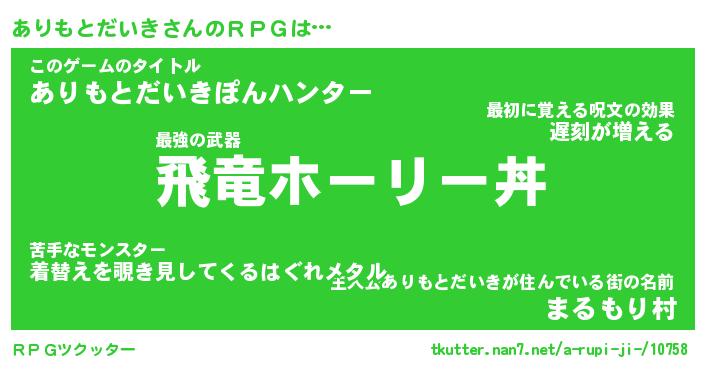 | 男性向けラノベタイトル風あだ名 | 『アリモトダイキアートオンライン』 |