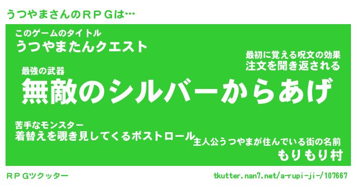 | ファンタジー風あだ名 | 『ウツフェル』『エターナルウツヤマー』 |