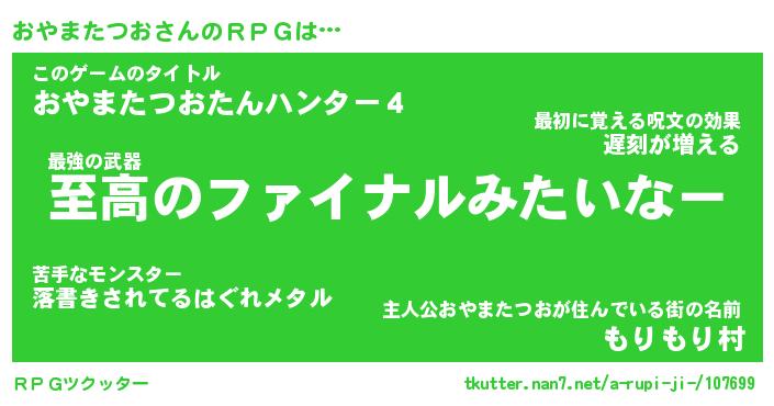 | 男性向けラノベタイトル風あだ名 | 『オヤマタツオアートオンライン』 |