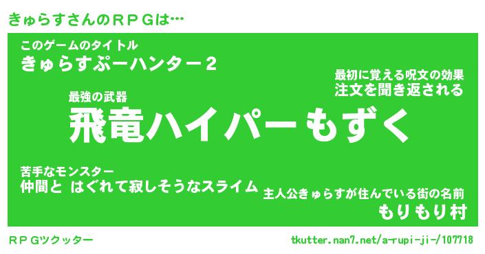 | 伝説のあだ名 | 『封印されし竜騎士きゅらす』 |