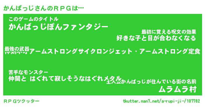 | ファンタジー風あだ名 | 『カンフェル』『エターナルカンバッジー』 |
