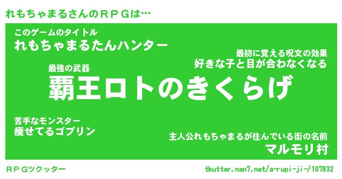 | 伝説のあだ名 | 『封印されし竜騎士れもちゃまる』 |