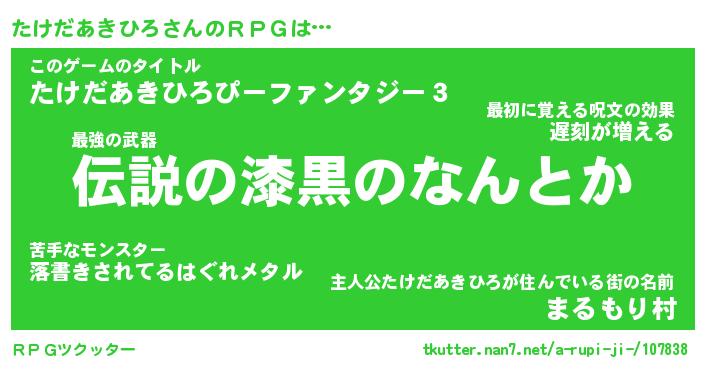 | 胡散臭い通販商品みたいなあだ名 | 『モテモテ間違いなし霊験あらたかなお札…その名も「たけだあきひろ」』 |