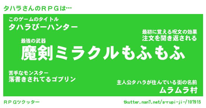 | ファンタジー風あだ名 | 『タハフェル』『エターナルタハラー』 |