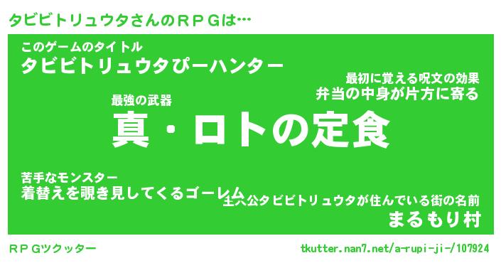 | 男性向けラノベタイトル風あだ名 | 『タビビトリュウタアートオンライン』 |