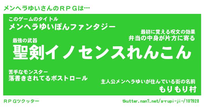 | ヒーロー風カッコイイあだ名 | 『スーパーメンヘラユイ』『銀牙騎士メン』 |
