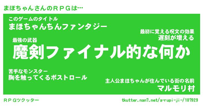 | ファンタジー風あだ名 | 『マホフェル』『エターナルマホチャンー』 |