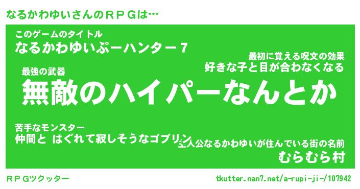 | 伝説のあだ名 | 『封印されし竜騎士なるかわゆい』 |