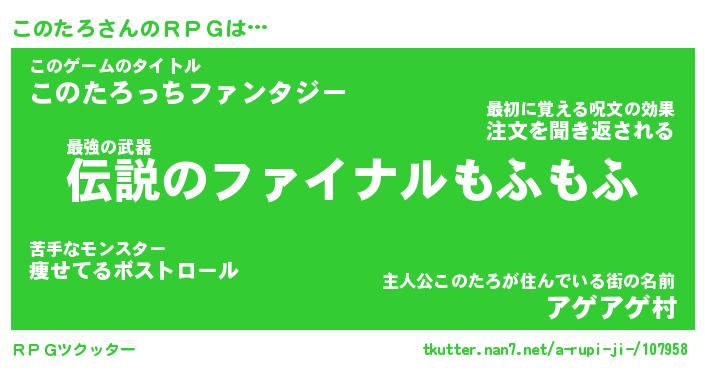 | 意味不明あだ名 | 『ペロリンこのたろ』『永久保存このたろ』 |