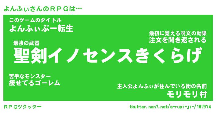 | 胡散臭い通販商品みたいなあだ名 | 『必ず成功する霊験あらたかなお札…その名も「よんふぃ」』 |