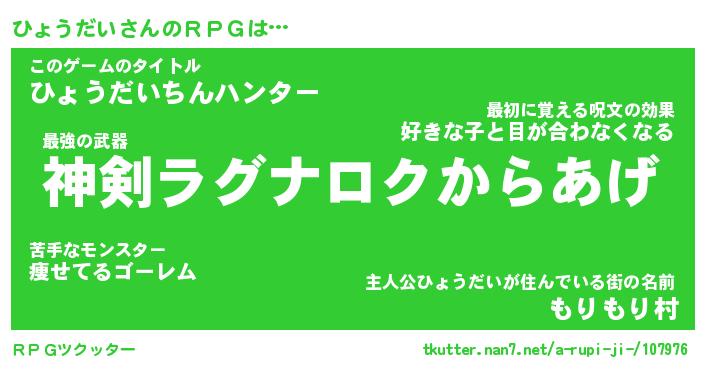 | ヒーロー風カッコイイあだ名 | 『スーパーヒョウダイ』『銀牙騎士ヒョ』 |