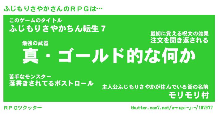 | 男性向けラノベタイトル風あだ名 | 『フジモリサヤカアートオンライン』 |