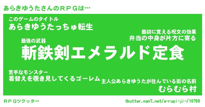 | ヒーロー風カッコイイあだ名 | 『スーパーアラキユウタ』『暗黒騎士アラ』 |