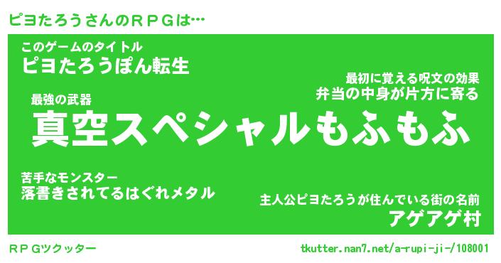 | 伝説のあだ名 | 『封印されし竜騎士ピヨたろう』 |