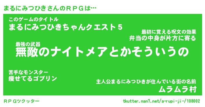 | 伝説のあだ名 | 『封印されしスナイパーまるにみつひき』 |