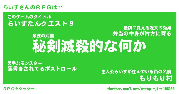 | 胡散臭い通販商品みたいなあだ名 | 『必ず成功する霊験あらたかなお札…その名も「らいす」』 |