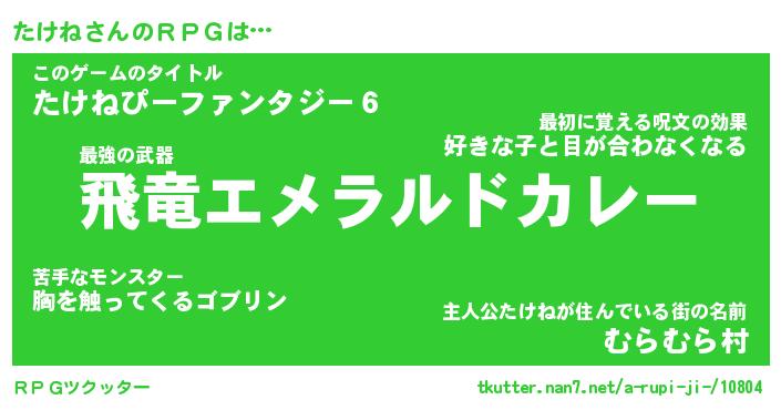 | 男性向けラノベタイトル風あだ名 | 『タケネアートオンライン』 |