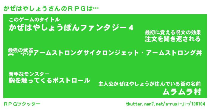 | 胡散臭い通販商品みたいなあだ名 | 『億万長者になれるブレスレット…その名も「かぜはやしょう」』 |