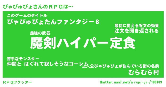 | 男性向けラノベタイトル風あだ名 | 『ぴゃぴゅぴょの憂鬱』 |