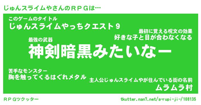 | 男性向けラノベタイトル風あだ名 | 『じゅんスライムやの憂鬱』 |