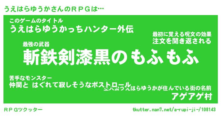 | 胡散臭い通販商品みたいなあだ名 | 『必ず成功する霊験あらたかなお札…その名も「うえはらゆうか」』 |