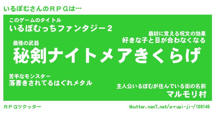 | 胡散臭い通販商品みたいなあだ名 | 『必ず成功する霊験あらたかなお札…その名も「いるぼむ」』 |