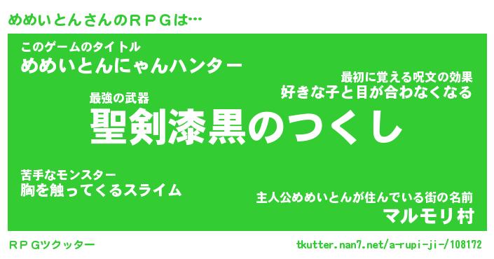 | 男性向けラノベタイトル風あだ名 | 『めめいとんの憂鬱』 |