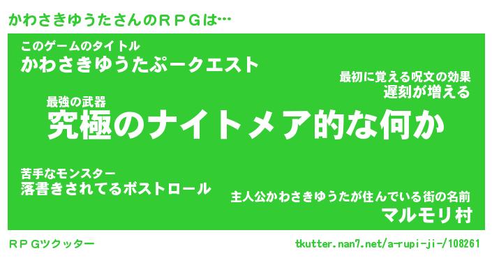 | 胡散臭い通販商品みたいなあだ名 | 『モテモテ間違いなし霊験あらたかなお札…その名も「かわさきゆうた」』 |