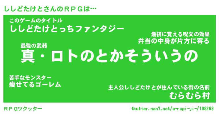 | 伝説のあだ名 | 『封印されし竜騎士ししどたけと』 |