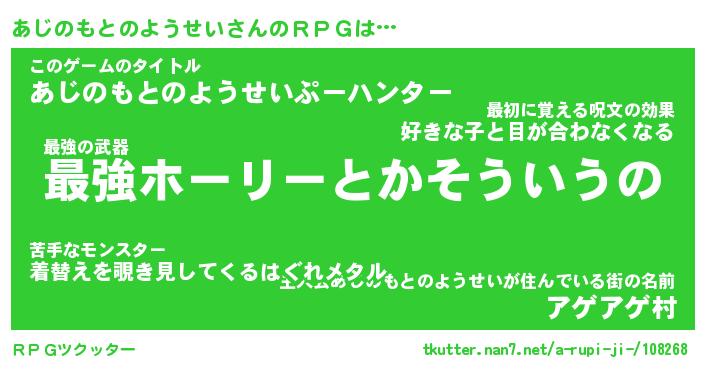 | 胡散臭い通販商品みたいなあだ名 | 『モテモテ間違いなし水晶球…その名も「あじのもとのようせい」』 |
