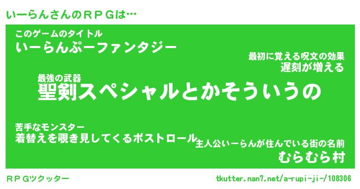 | 男性向けラノベタイトル風あだ名 | 『いーらんの憂鬱』 |