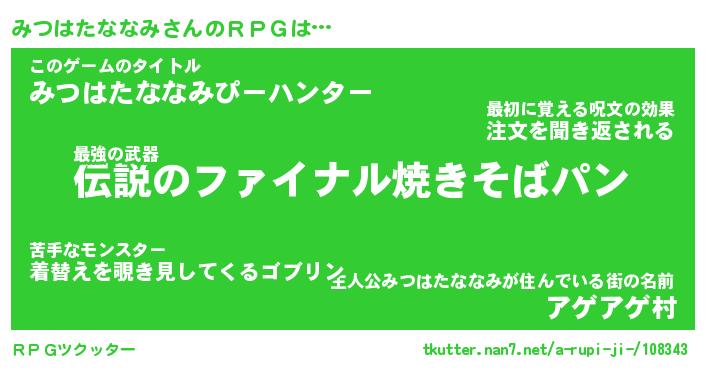 | 胡散臭い通販商品みたいなあだ名 | 『モテモテ間違いなし水晶球…その名も「みつはたななみ」』 |