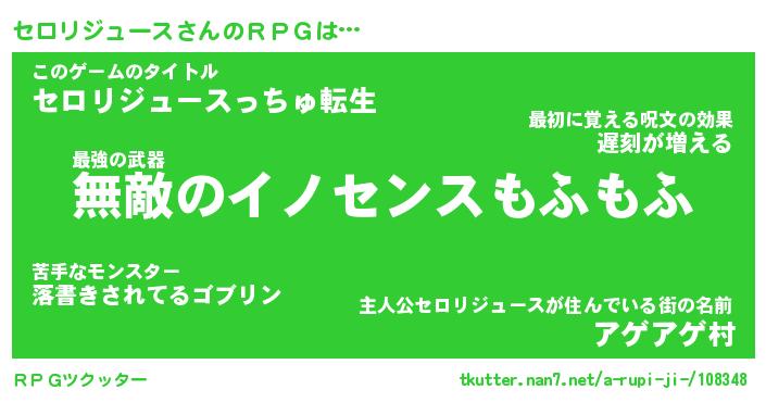 | 男性向けラノベタイトル風あだ名 | 『セロリジュースアートオンライン』 |