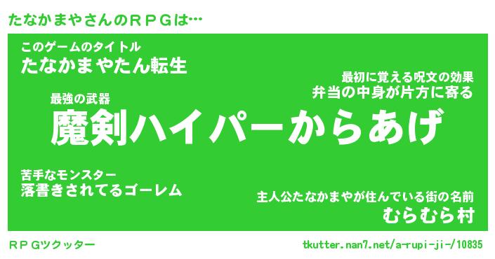 | ファンタジー風あだ名 | 『タナフェル』『エターナルタナカマヤー』 |