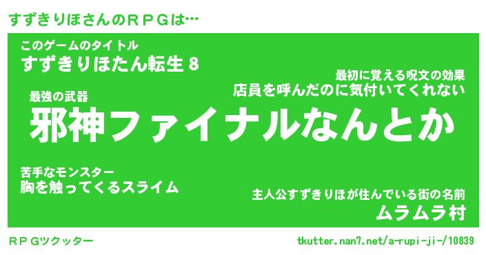 | ファンタジー風あだ名 | 『スズフェル』『エターナルスズキリホー』 |